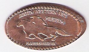 1) 'Booth Western Art Museum', A man riding on a horse with the name of the Museum over the design.