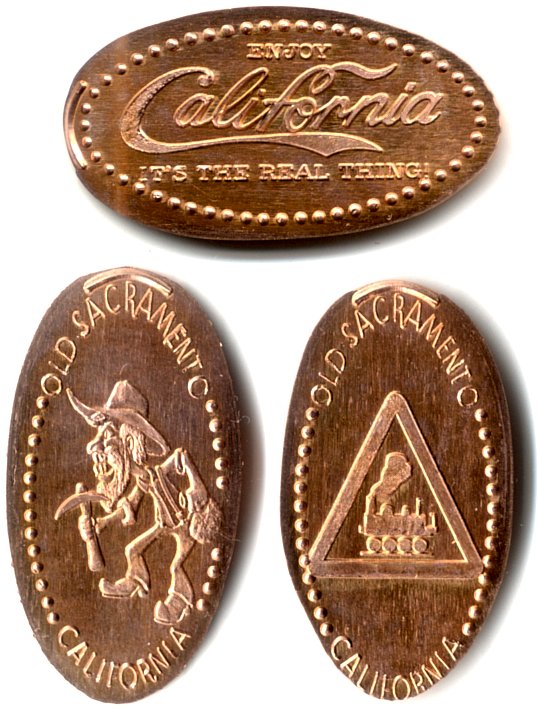 3) 'Old Sacramento California', Train engine in triangle, |