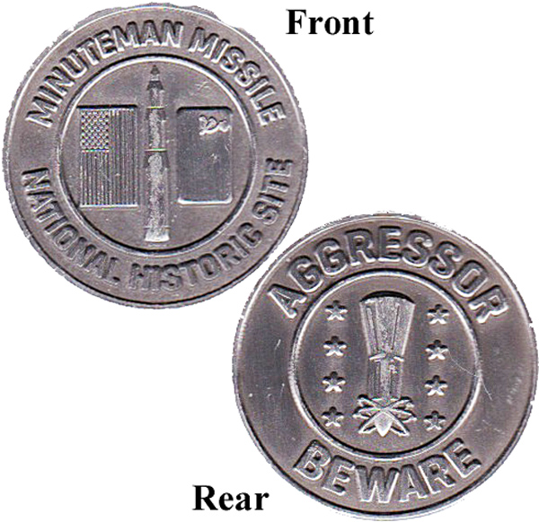 Obverse: An ICBM between the United States and Soviet Union flags with 'Minuteman Missile National Historic Site'.