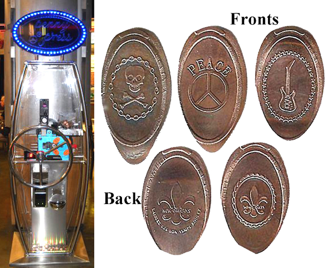 The reverse sides are all the same-a fleur de lis with New Orleans over it and "Laissez les bon temps roulez" under it. .