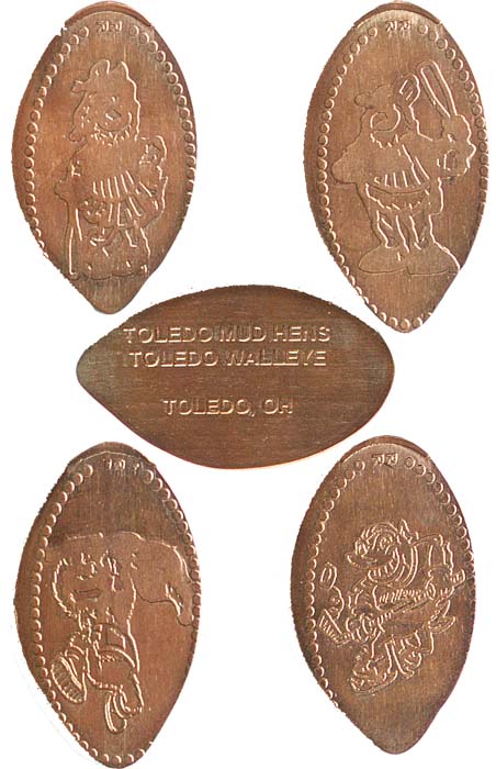 4 mules, Backs say, Toledo Mudhens Toledo Walleyes Toledo OH. Designs are:
